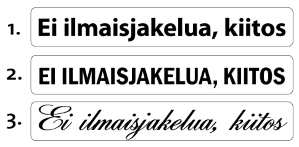 "Ei ilmaisjakelua"-tarrat postilaatikoihin ja -luukkuihin.