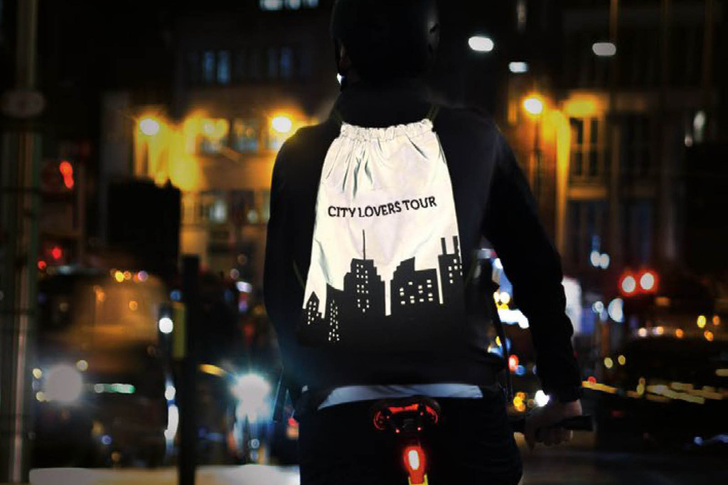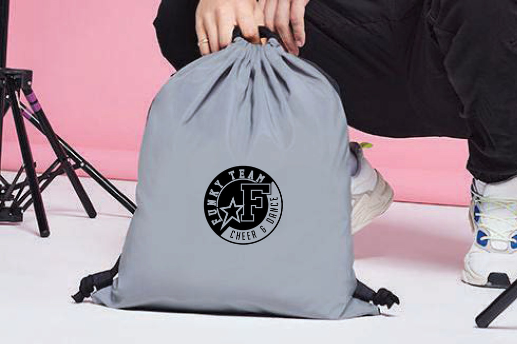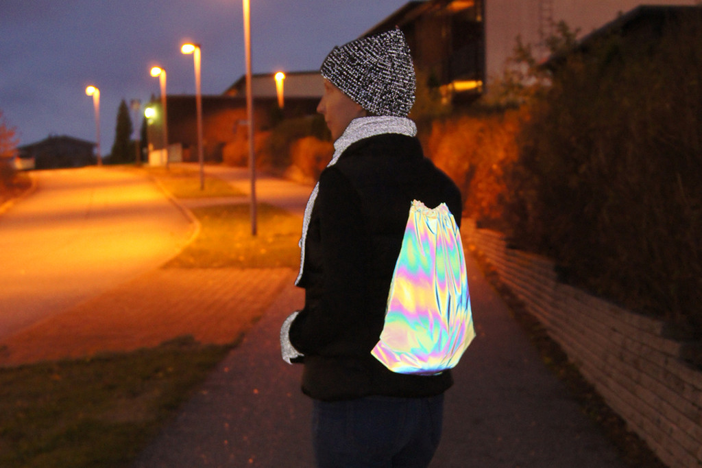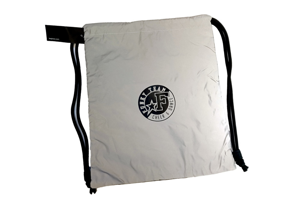 Heijastavasta materiaalista valmistettu jumppapussi / narureppu.