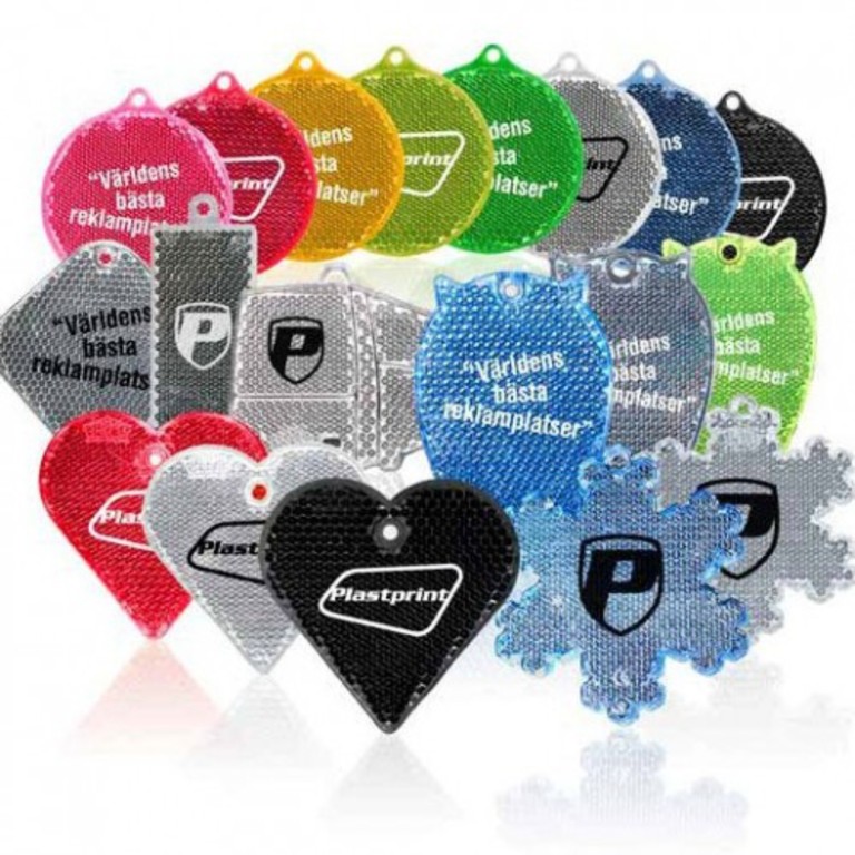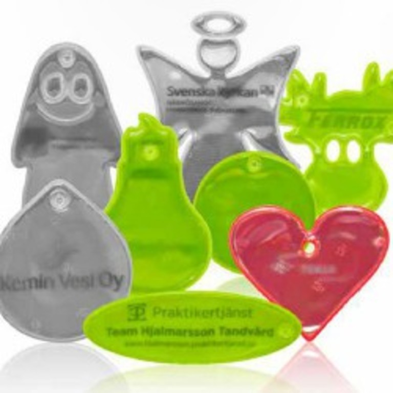Eri väriset ja muotoiset pehmoheijastimet, kovamuoviset heijastimet,
