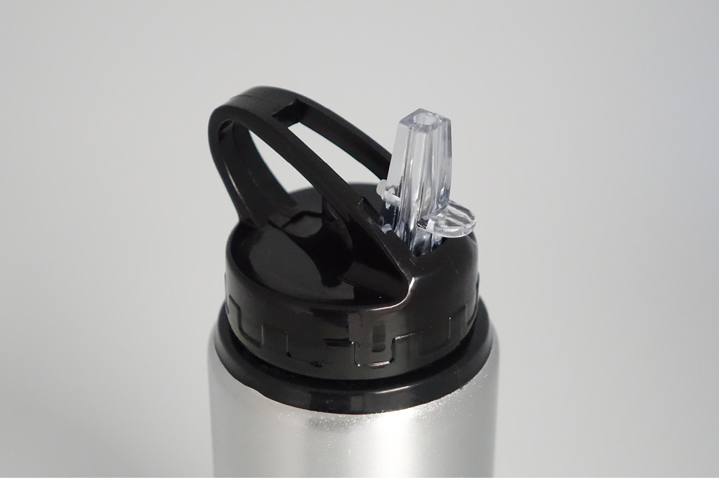 Juomapullo alumiinia ja PP-muovia joustavalla pillillä.