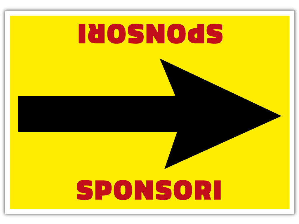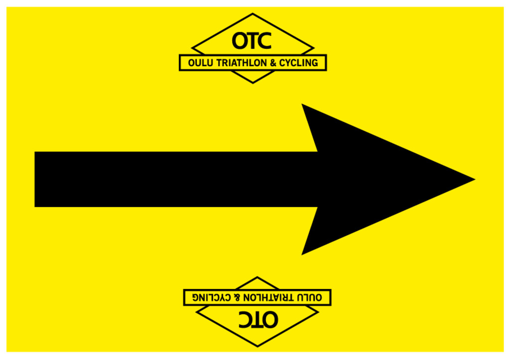 Sponsorilogo / tapahtumanimi painetaan sekä nuolen ylä- että alapuolelle, niin että samaa suuntanuolta voi käyttää molempiin suuntiin.